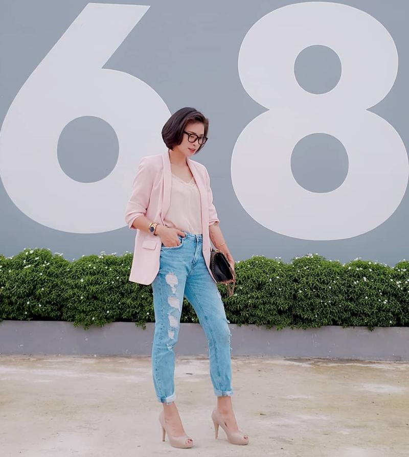 Thời gian gần đây, Bảo Thanh chuyển hướng style trẻ trung cùng các items chuẩn xu hướng. Nữ diễn viên "lên đồ" cùng kimono kẻ sọc, quần jeans ống rộng, giầy sneaker năng động. Người đẹp nâng tầm set đồ bằng chiếc túi Gucci ton-sur-ton.