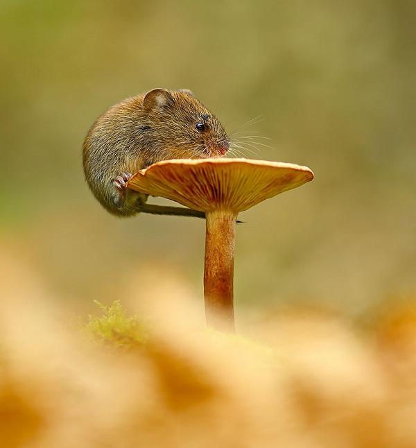 4. Chú cú nhỏ co mình tránh mưa dưới chiếc ô nấm. Cảnh tượng cũng lãng mạn kém gì trong phim đâu.