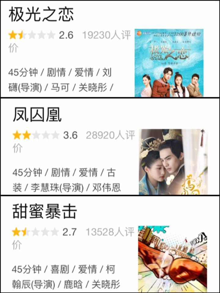 Với bộ phim Cực quang chi luyến cùng Mã Khả, phim chỉ nhận được 2,6 điểm, trong khi đó Phượng tù hoàng là 3,6 còn bộ phim Điềm mật bạo kích mới đây cũng không "khá khẩm" hơn là bao khi chỉ nhận được 2,7 điểm với hàng loạt đánh giá 1 sao. Đây cũng là một "kỉ lục" chưa có nghệ sĩ nào đạt được.