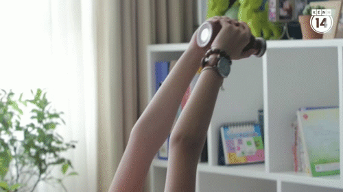 - Cằm một vật nặng vừa sức (ví dụ như chai nước), nâng lên thẳng trước mặt rồi hạ xuống sau đầu.