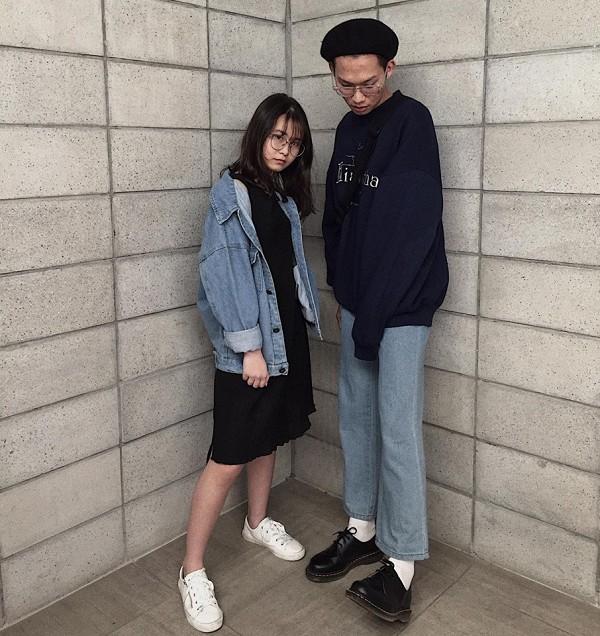 Phong cách của đôi bạn có chút gì đó “nerdy” khi kết hợp toàn các trang phục style vintage như: áo khoác jeans oversized, mũ nồi, quần jeans ống loe, giày Dr.cổ thấp…