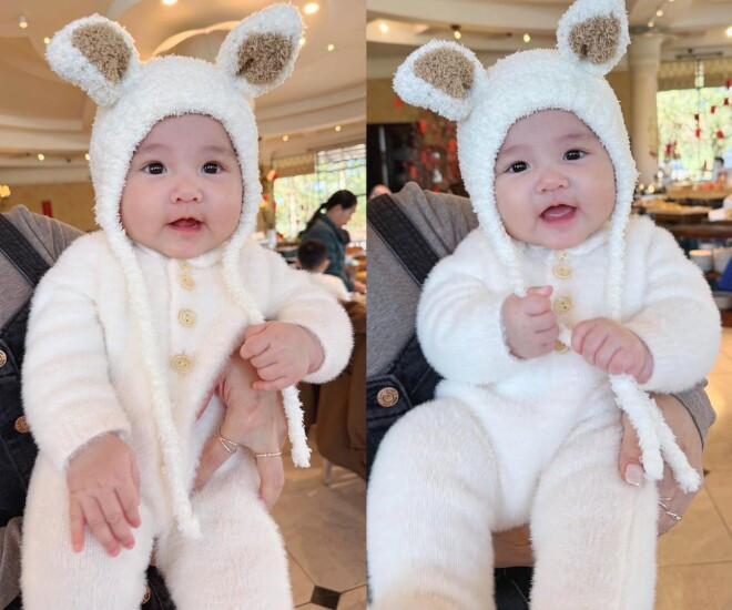 Con gái Chi Bảo "đốn tim" dân mạng với vẻ ngoài bụ bẫm, làn da trắng hồng. Cô bé được nhận xét là "sao y bản chính" của ba Chi Bảo.