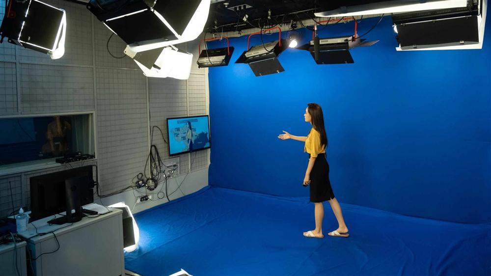 Một lần khác, khi người xem đều nghĩ rằng BTV Thời sự đang diện áo dài khi dẫn bản tin, những hình ảnh hậu trường lại bật mí chiếc áo cổ tròn, họa tiết hoa văn của cô thực tế là dáng áo ngắn.