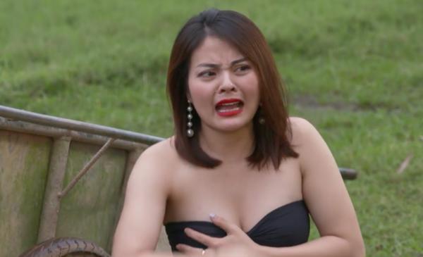 Trong một cảnh phim "Đại gia chân đất 9", Trà My đã diễn xuất trước ống kính chỉ với một chiếc áo lót. Thi thoảng, cô dùng tay che ngực mình lại nhưng cách che của cô gái chỉ càng khiến người xem cảm thấy hớ hênh và phản cảm hơn.