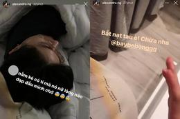 Trước hành động của con, Alex liền chộp luôn khoảnh khắc đáng yêu này và hào hứng đăng trên story. "Bắt nạt tau nè, chừa nha. Nằm ké có tí mà nó nỡ lòng nào đạp đầu mình cơ chứ", tình đồng giới hóm hỉnh.