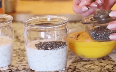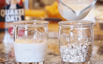 - Tiếp đó bạn đổ sữa vào ngập yến mạch.