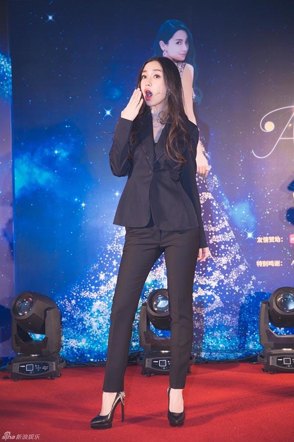 Sau đó Angela Baby đã thay trang phục thành vest đen