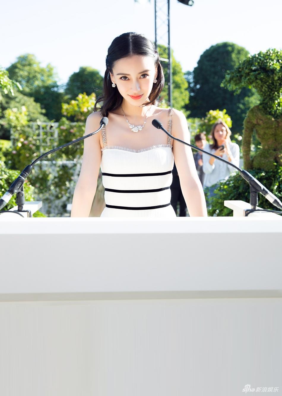 Vào chiều tối 3/7, Angela Baby với tư cách là đại sứ thương hiệu Dior tại thị trường Trung Quốc đã có mặt tại bảo tàng Paris, tham dự buổi lễ triển lãm kỷ niệm 70 năm. Xuất hiện trong chiếc váy trắng dài nữ tính, Angela Baby hóa thân thành một nàng tiểu thư xinh đẹp dịu dàng.