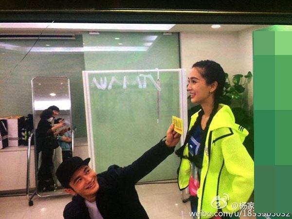 Đặc biệt hộ tống Angela Baby đi dự sự kiện lần này còn có ông xã Huỳnh Hiểu Minh, cả hai liên tục thân mật và thể hiện tình cảm đáng yêu phía sau hậu trường. Huỳnh Hiểu Minh còn không ngại trở thành trợ lý bất đắc dĩ khi giúp vợ thực hiện phỏng vấn và chụp hình.