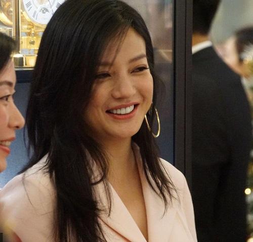 Bà xã Huỳnh Hiểu Minh lộ rõ nếp nhăn đuôi mắt khi cười