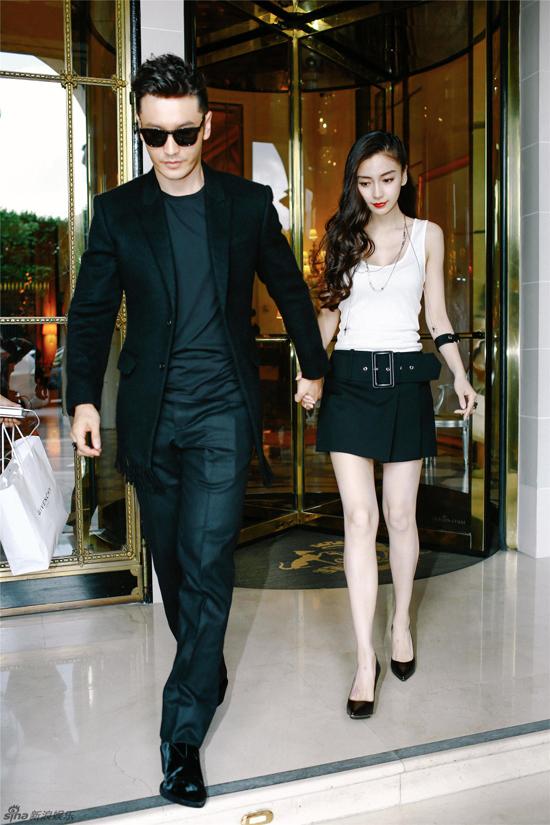 Tại đây, nữ diễn viên lựa chọn áo ba lỗ trắng kết hợp chân váy mini khoe dáng thanh mảnh. Huỳnh Hiểu Minh lịch lãm, sang trọng với bộ suit đen. Cả hai set đồ đều nằm trong bộ sưu tập của Givenchy. Rất nhiều người khen ngợi, gu thời trang của cặp đôi sành điệu và đẹp chẳng khác gì fashionista. Họ còn gây chú ý với những hành động tình cảm ngọt ngào và lãng mạn.