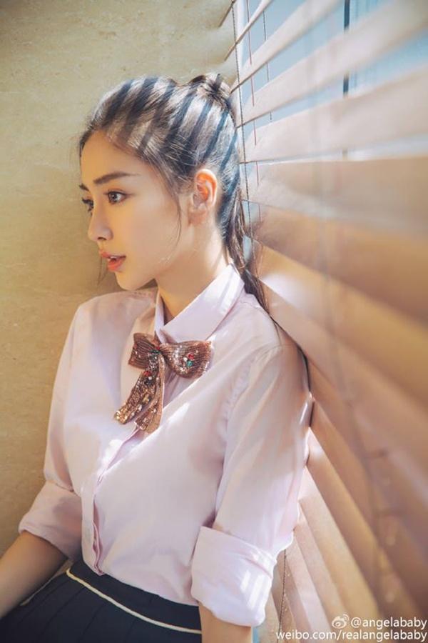 Angela Baby xinh đẹp trong tạo hình nữ sinh cùng đôi giày cao gót