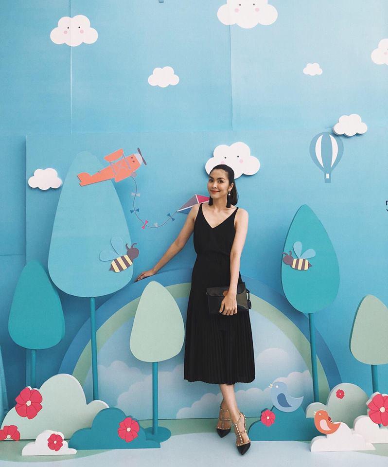 Tăng Thanh Hà vẫn trung thành với style giản dị cùng váy hai dây đơn sắc kết hợp giầy Valentino - items được nhiều ngôi sao yêu thích.