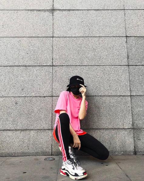 Bảo Anh khoe street style cực ngầu cùng cách tạo dáng đậm chất hiphop gồm áo thun phom oversize, quần thể thao và giầy sneaker khủng.