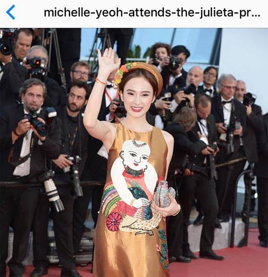 Trong những khoảnh khắc đầu tiên của cô tại Pháp, Angela Phương Trinh diện bộ váy dáng suông, thêu họa tiết bức tranh đông hồ nổi tiếng. Rất nhiều người cho rằng, đây là một sự lựa chọn thông minh của cô để khi mang bản sắc dân tộc đến với thế giới.