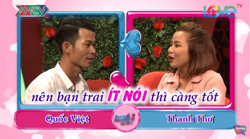 Bạn gái là Trần mai Hoàng Thanh Thư, 28 tuổi, hiện là nhân viên kinh doanh tại Sài Gòn. Bạn trai nhìn khá chững chạc tên Nguyễn Quốc Việt, làm nhân viên xây dựng cũng tại Hồ Chí Minh. Thư và Việt cùng tuổi, sinh năm 1991 nên có thể sẽ có nhiều điểm tốt, hiểu nhau nhiều hơn. Nói về mình Việt nhận là người vui vẻ, hòa đồng, thẳng tính nhưng cũng chính vì tính tình thẳng thắn nên sợ mọi người sẽ tự ái. Việt hài hước chia sẻ mình hay bị lạc đường, đi một hồi là bị lạc luôn không biết đường về.