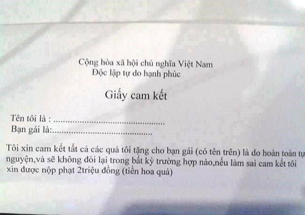 Thậm chí có cả một tờ giấy cam kết... đòi quà.
