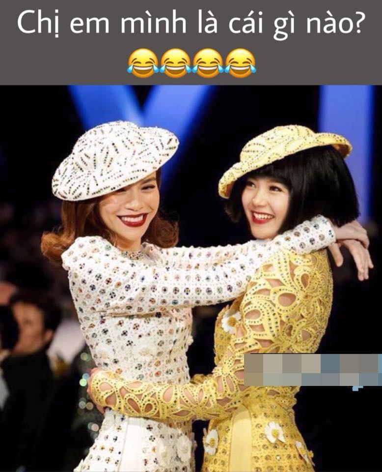 Sự xuất hiện của Thanh Hằng và Hồ Ngọc Hà ở vị trí vedette gây bất ngờ lớn cho khán giả. Đã 5 năm rồi, người ta mới thấy cặp đôi này nắm tay nhau sải bước trên sàn diễn thời trang. Phiên bản gốc đẹp lung linh là thế, nhưng đến ảnh chế thì...