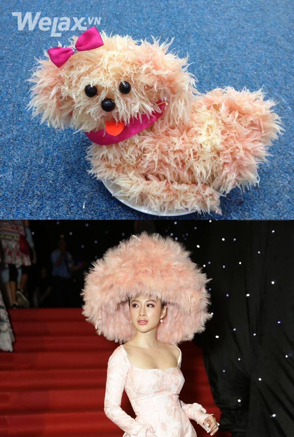 Như thường lệ, "nữ hoàng thảm đỏ" Angela Phương Trinh tiếp tục chiếm spotlight ngay ngày khai mạc VIFW 2018. Diện thiết kế áo dài cổ khoét sâu khoe vòng 1 đẫy đà tôn dáng, tuy nhiên điểm nhấn khiến nhiều người phải chú ý chính là chiếc mũ lông to như tổ chim "chình ình" trên đầu. Đây cũng là hình ảnh được cư dân mạng chế nhiều nhất.