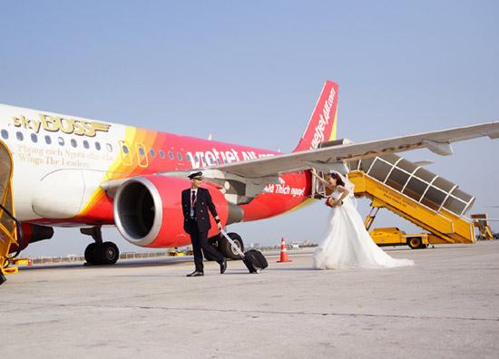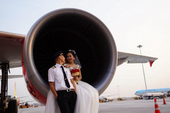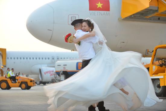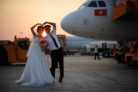 Bộ ảnh cưới độc đáo được thực hiện trên sân bay, nhân ngày 8/3 với sự “giúp sức” của đồng nghiệp, sự chấp thuận của cơ quan quản lý hàng không.