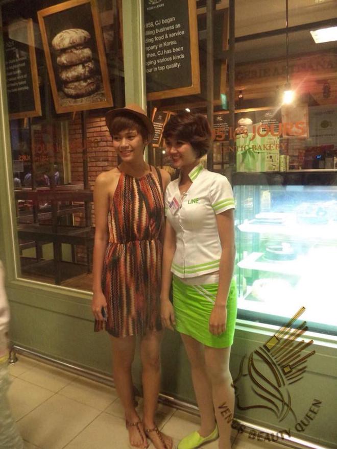 Trong bức ảnh, Mâu Thủy cá tính với mái tóc ngắn còn H'Hen Niê trông khá giản dị với bộ đồng phục nhãn hàng và mái tóc bob được uốn lọn lớn. Thời điểm này Hoa hậu Hoàn vũ 2017 vẫn đang làm khá nhiều công việc và chưa thực sự bước chân vào showbiz.