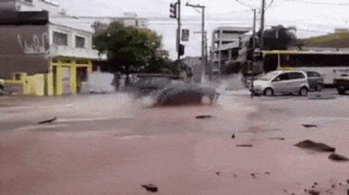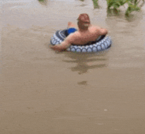 Mưa ngập cũng là cơ hội để bơi lội.