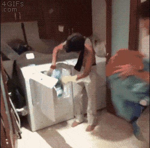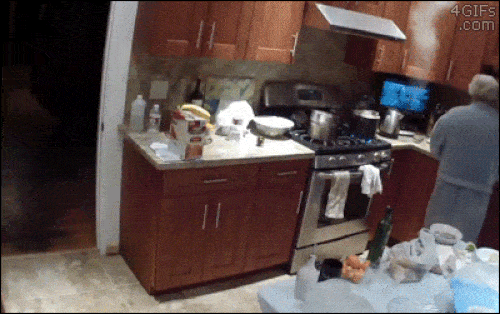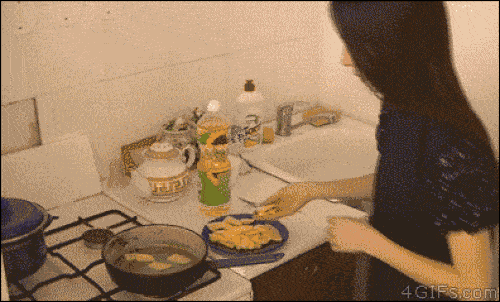 Chắc đây là lần đầu tiên cô gái vào bếp.