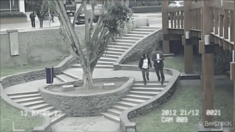 Tình huống oái oăm này xảy ra trong lúc một cặp đôi người Trung Quốc đang say sưa chụp ảnh cưới. Cô dâu thong thả bước trên hàng rào sắt, còn chú rể mỉm cười hạnh phúc bước đi bên dưới, không quên cầm tay cô dâu và ngước nhìn bẳng ánh mắt đầy tình cảm.