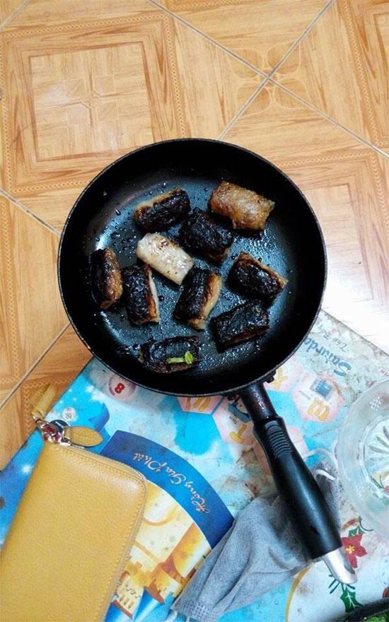 Một hình ảnh vụng về khác khi rán nem cũng được một thành viên chia sẻ.