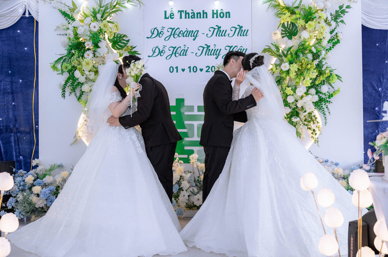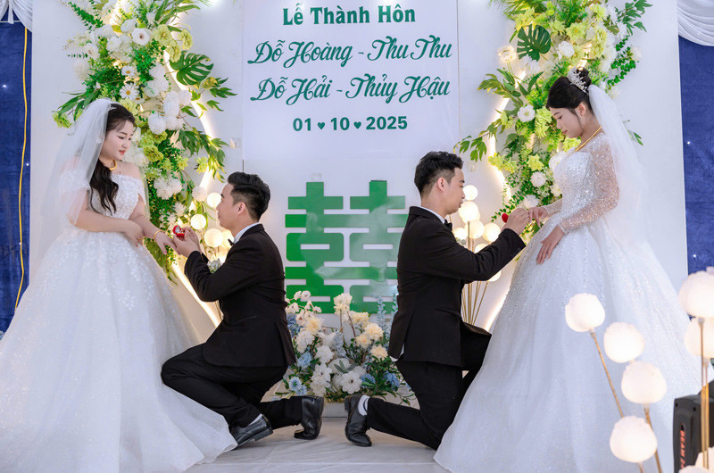 Trong đó, 2 chú rể là anh em sinh đôi rước vợ về cùng một ngày. Trên sân khấu cưới, 2 cặp đôi cùng làm lễ thành hôn, đại diện của 3 bên gia đình lần lượt lên phát biểu. Cảnh tượng đặc biệt này khiến người xem vừa thích thú vừa tò mò, song cũng xuất hiện nhiều ý kiến trái chiều quanh việc 2 anh em tổ chức cưới cùng ngày.