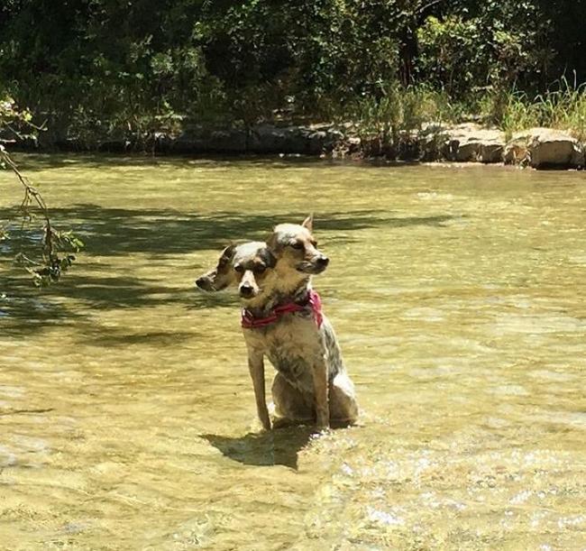 Bị troll thôi, chứ làm gì có chó ba đầu trên đời này.
