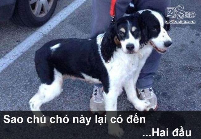 Không có "thú cưng" 2 đầu nào cả, mà thân của chú chó kia đang ở dưới chân của người đàn ông bên cạnh