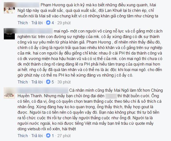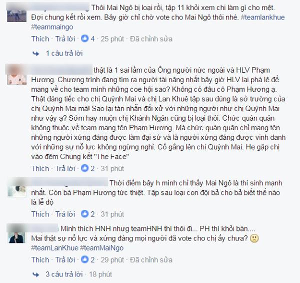 Khi Mai Ngô bị loại, cư dân mạng đã tỏ ra không phục và la ó rất nhiều trên mạng xã hội. Theo đó, các ý kiến cho rằng Phạm Hương nên loại ngay Chúng Huyền Thanh vì cô gái này có sự thể hiện kém nhất tập 10.