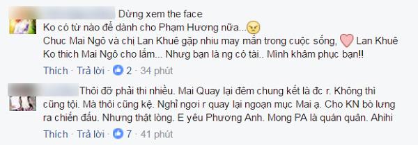 Tập 10 The Face vừa lên sóng và team Phạm Hương tiếp tục giành thắng cuộc. Không nằm ngoài dự đoán của khán giả, Phạm Hương đã thẳng tay "tiêu diệt" Mai Ngô - thí sinh cuối cùng của team Lan Khuê theo đúng kế hoạch từ đầu mà cô đặt ra.