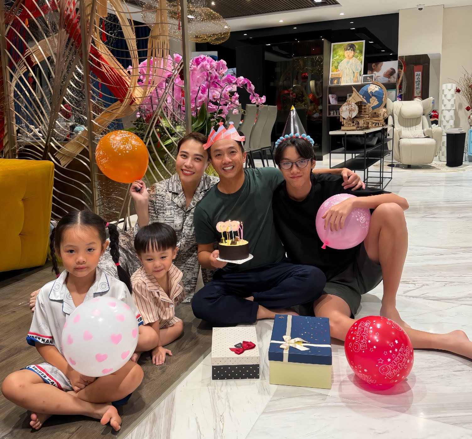 Cường Đô La hạnh phúc khi được vợ con tổ chức sinh nhật ấm cúng.