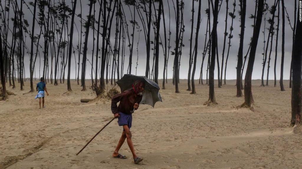 Bão lớn ở Bangladesh: Một người đàn ông đi giữa gió lớn ở Cox's Bazar, một thị trấn ở Bangladesh, ngày 30/5. Gần 1 triệu người đã phải sơ tán tới các vùng thấp hơn khi Bão Mora đổ bộ bờ biển đông nam nước này. Ảnh: AFP/Getty.