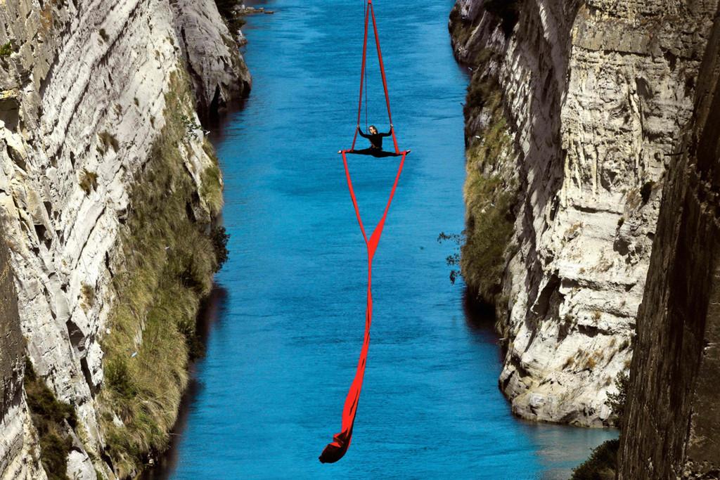 Biểu diễn trên kênh đào: Biên đạo múa và vũ công người Hy Lạp Katerina Soldatou biểu diễn trên Kênh Corinth, thành phố Corinth, Hy Lạp, ngày 30/5. Ảnh: AFP/Getty.