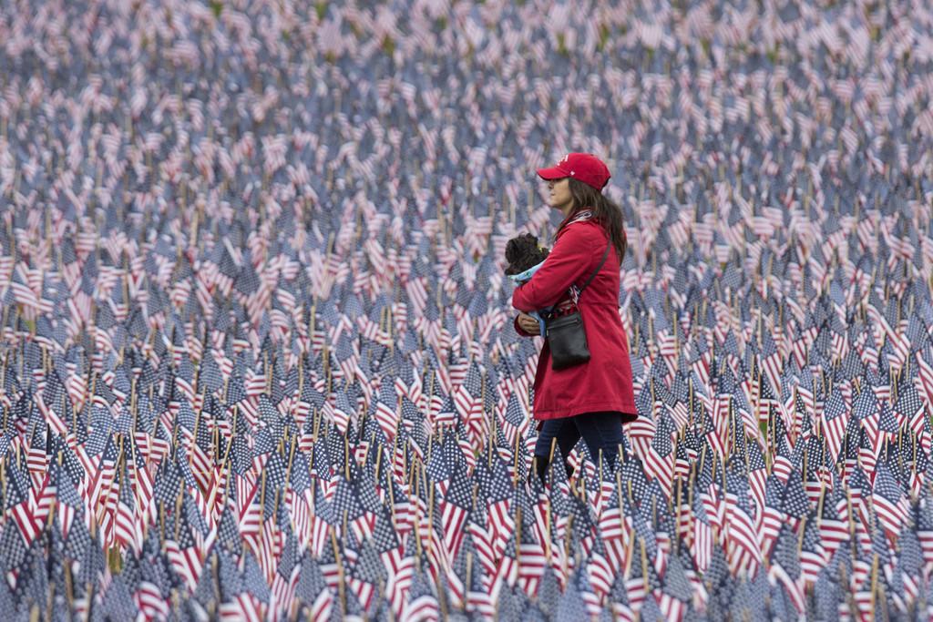 Ngày Tưởng niệm: 37.252 lá cờ được cắm ở Công viên Boston Common ngày 29/5 để tưởng nhớ các binh sĩ Massachusetts hy sinh tại Boston, Massachusetts, Mỹ. Theo truyền thống, các tình nguyện viên sẽ cắm hàng nghìn lá cờ ở Boston Common trong Ngày Tưởng niệm, ngày lễ liên bang vào ngày thứ 2 cuối cùng trong tháng 5 nhằm tưởng niệm các quân nhân Mỹ hi sinh trong khi làm nhiệm vụ. Ảnh: Getty.