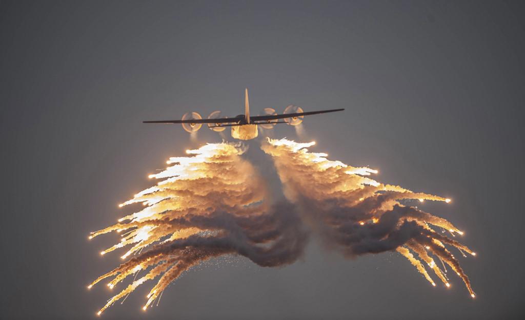 Trình diễn quân sự: Máy bay quân sự trình diễn trong một buổi tập huấn tại Căn cứ Không quân Roodewal ở tỉnh Limpopo, Nam Phi, ngày 1/6. Ảnh: AFP/Getty.