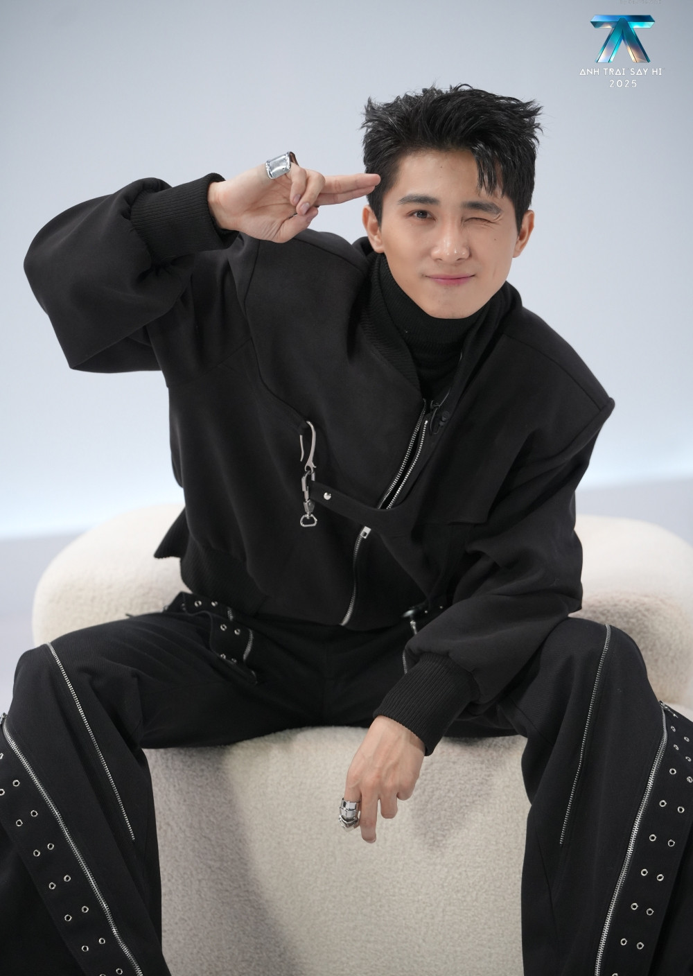 Gây chú ý nhất là sự xuất hiện của em trai Quang Hùng MasterD - Ryn Lee. Nam ca sĩ diện outfit nổi bật, với ngoại hình điển trai và cool ngầu, nhưng vẫn có chút bẽn lẽn đặc trưng của một tân binh.