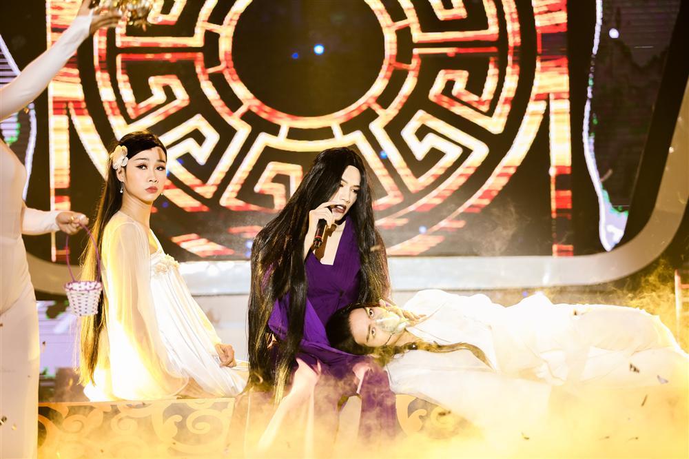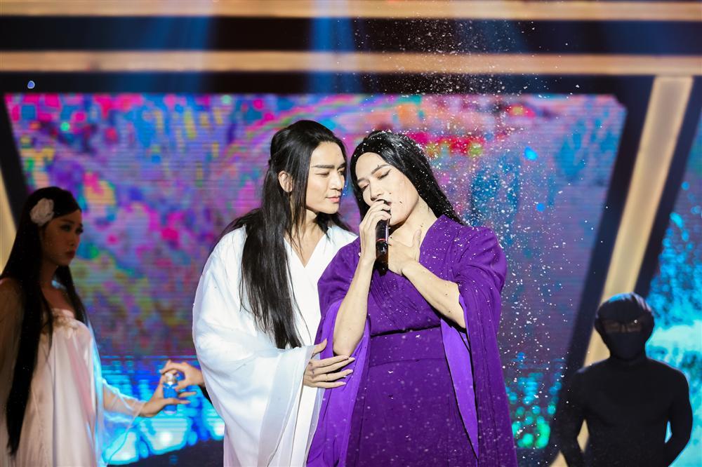Hùng Thuận có màn hóa thân đặc biệt thành ca sĩ chuyển giới Conchita Wurst bùng cháy trong ca khúc Rise like a phoenix (Trỗi dậy như chim phượng hoàng).