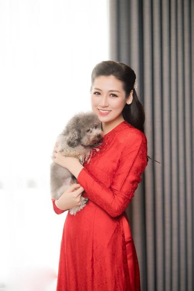 Tú Anh mặc áo dài đỏ, hồi hộp chờ thời khắc trọng đại. Theo một nguồn tin, váy cưới á hậu mặc trong ngày cưới được giữ kín đến phút chót để tạo sự bất ngờ.