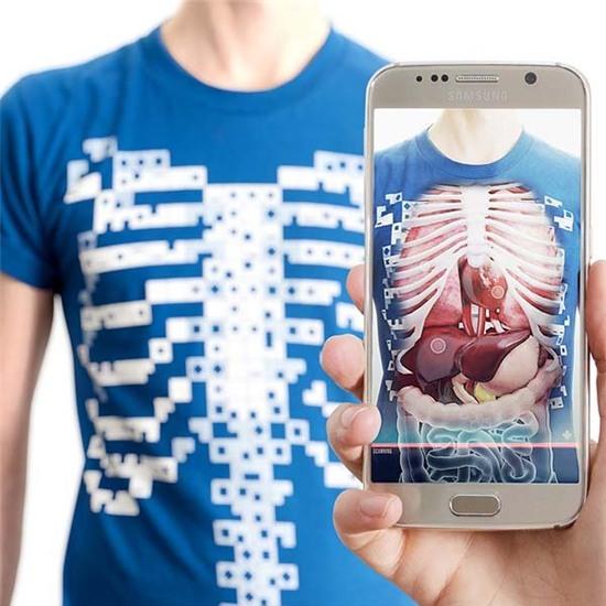 Khi mặc áo thun đặc biệt này, dùng camera đưa lại gần chúng ta sẽ có thể nhìn thấy tim, phổi và các bộ phận nội tạng khác bên trong cơ thể như thật.