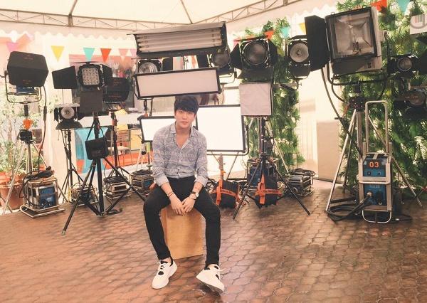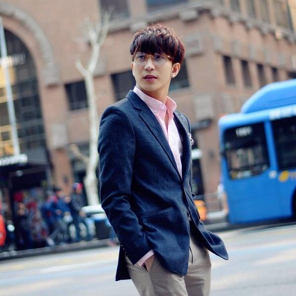 Suit màu be đi cùng áo sơmi xanh vô cùng hài hòa, tôn lên màu da sáng của chủ nhân :