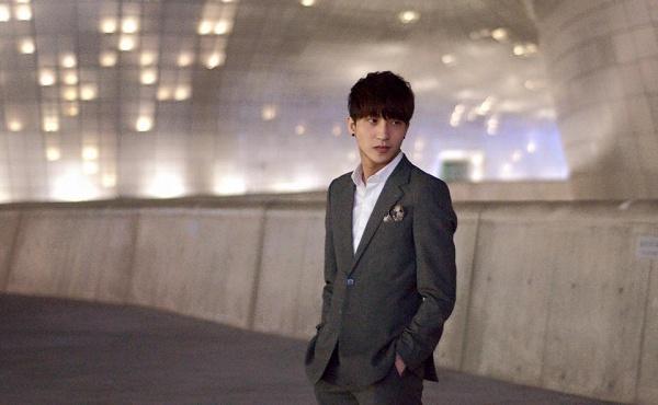 B Trần vẫn giữ được nét lãng tử trong bộ suit cổ điển kết hợp cùng áo có cổ bên trong.