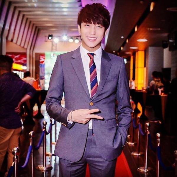 Hiếm lắm mới thấy B Trần mặc suit cùng sơmi hồng.