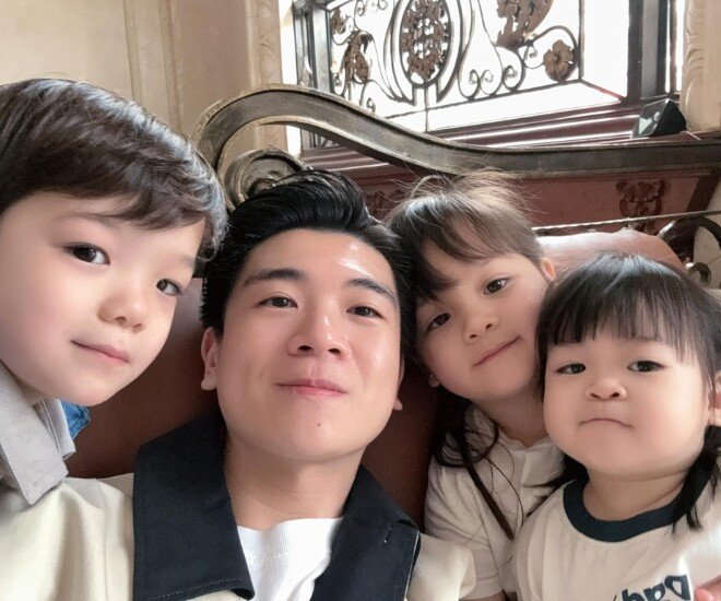 Dù công việc bận rộn nhưng anh chồng Đỗ Mỹ Linh luôn dành quỹ thời gian riêng cho các con yêu. Dịp nghỉ lễ vừa qua, Đỗ Vinh Quang đưa cặp nhóc tỳ song sinh đi bơi.