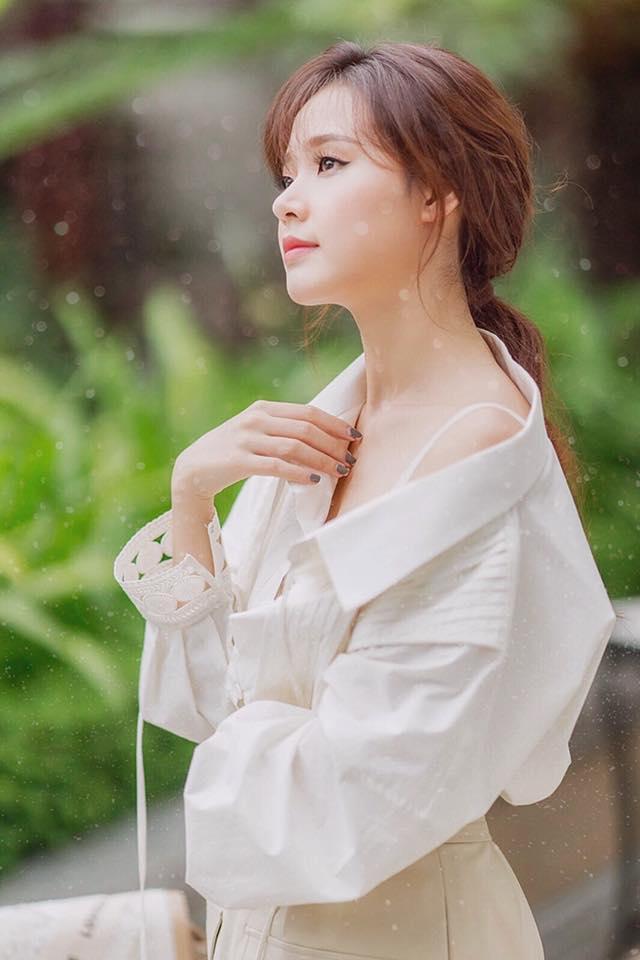 Midu thích thú với tiết trời Sài Gòn sau những ngày nắng chói chang: "Hôm nay Sài Gòn mưa tầm tã. Đúng là tháng 7 mưa ngâu"