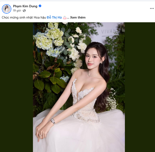 Theo đó, "bà trùm hoa hậu" đăng tải hình ảnh hoa hậu Đỗ Thị Hà kèm lời chúc mừng sinh nhật.