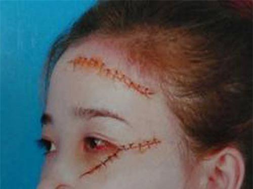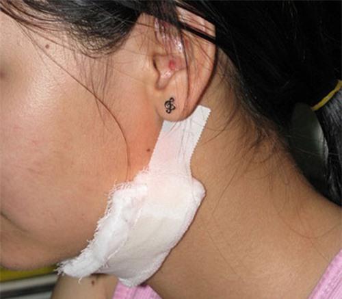 Bác sỹ cho biết vết thương của Thảo sâu, dài gần chục cm, sát phía cằm má trái và được khâu 7 mũi. (Ảnh: Dân trí)